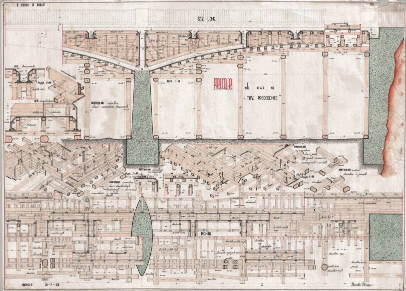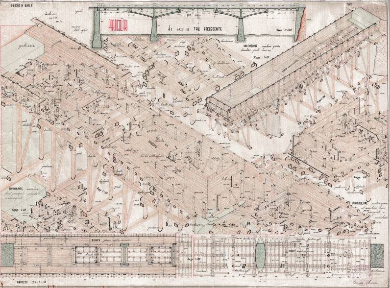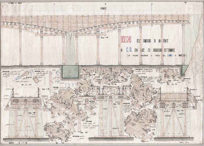 Le tavole riguardano un progetto di ricostruzione del Ponte sul Torrente Lumiei, strada comunale Ampezzo-Oltris e Voltois (Archivio Pierino Burba).