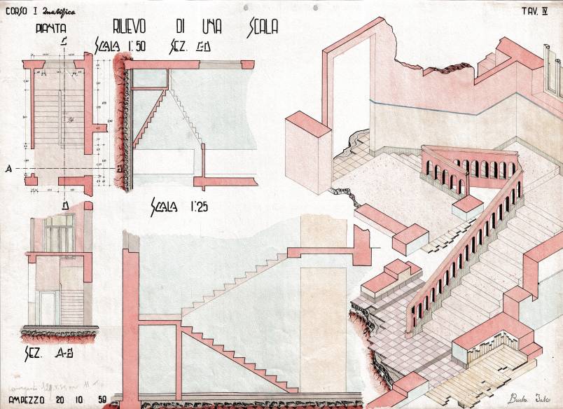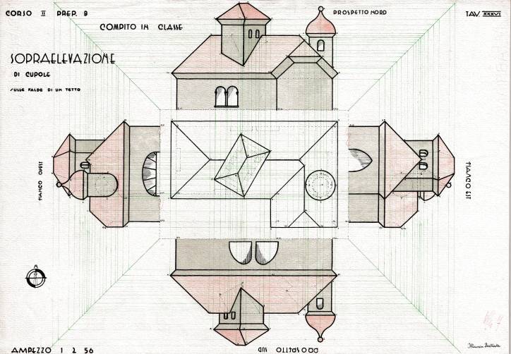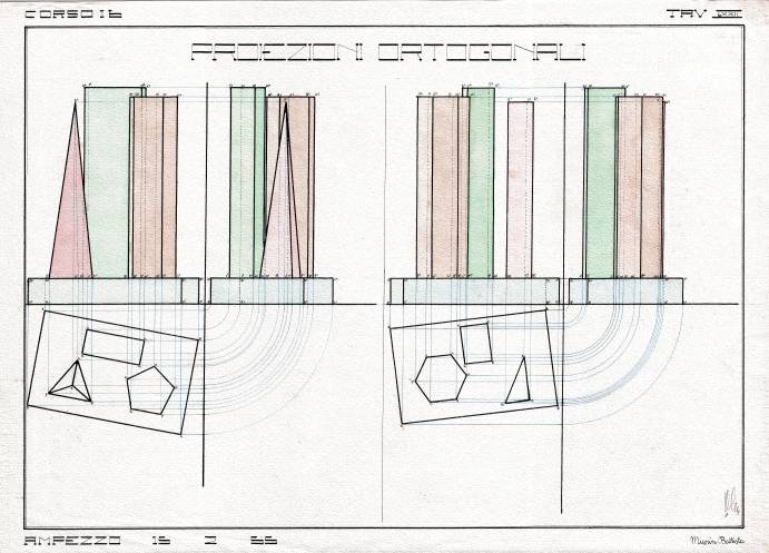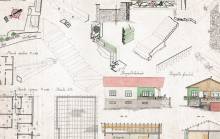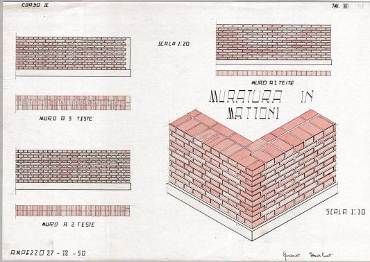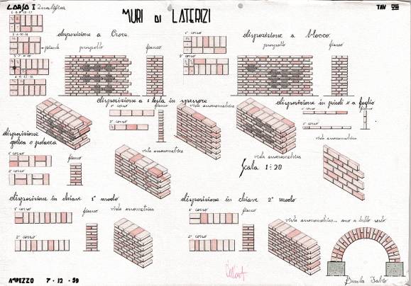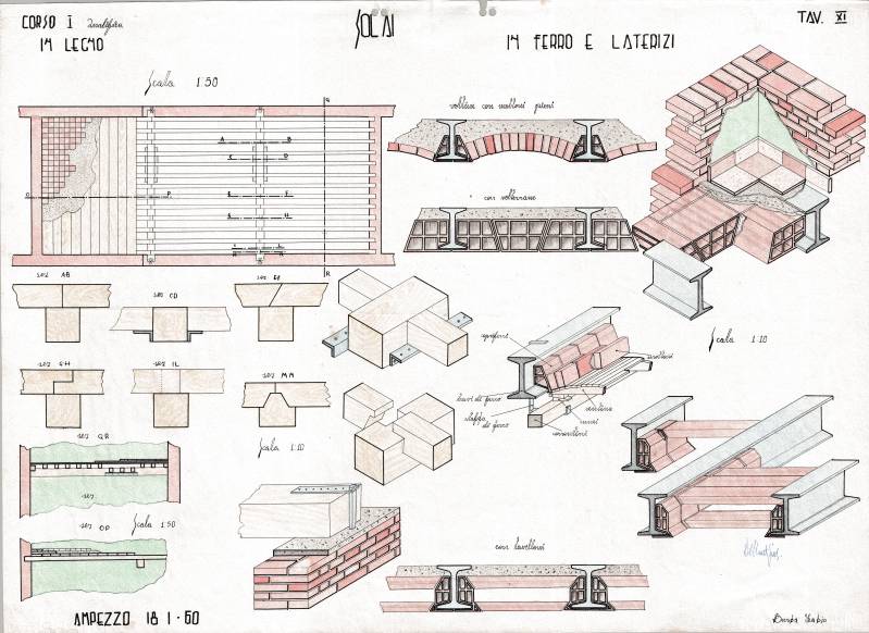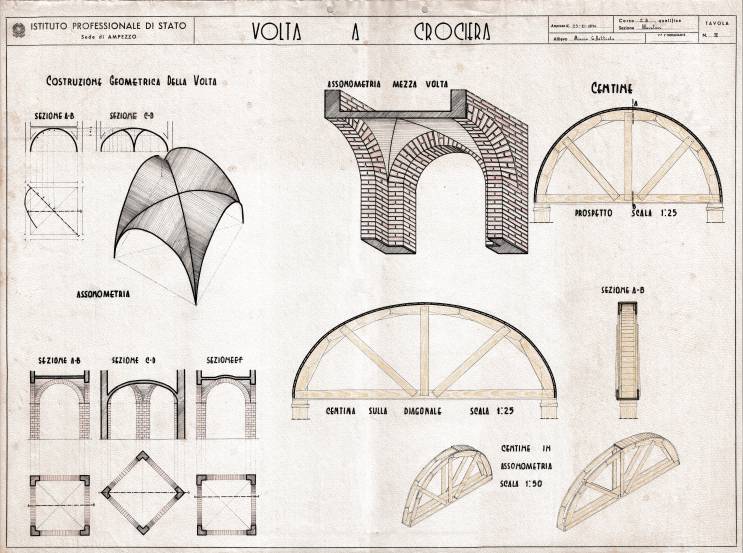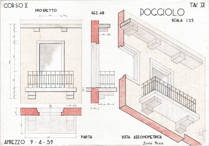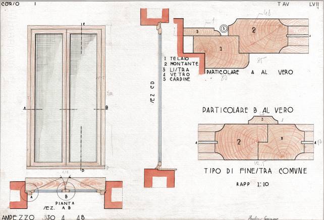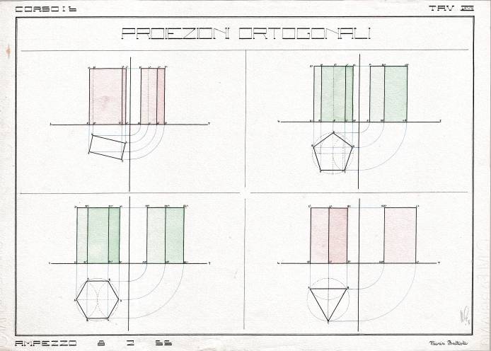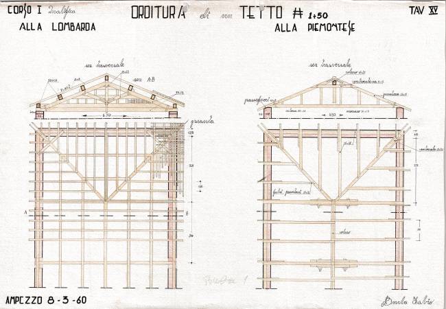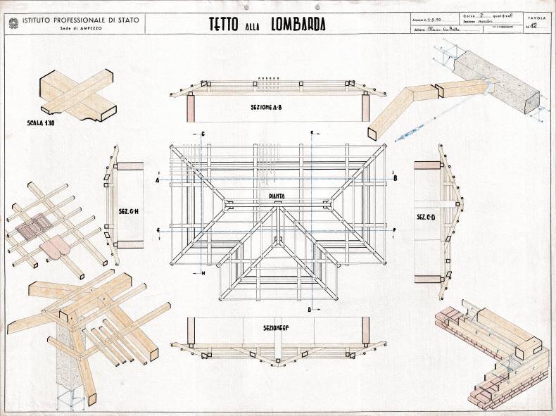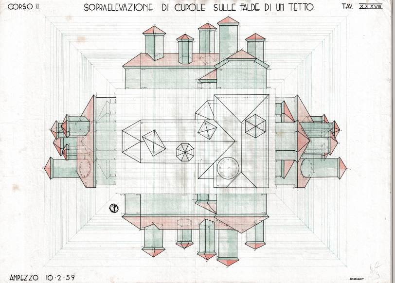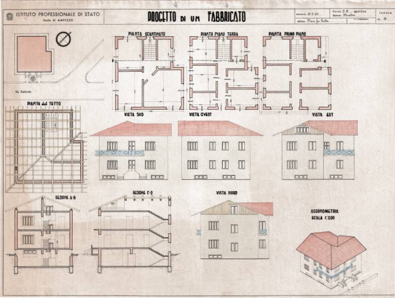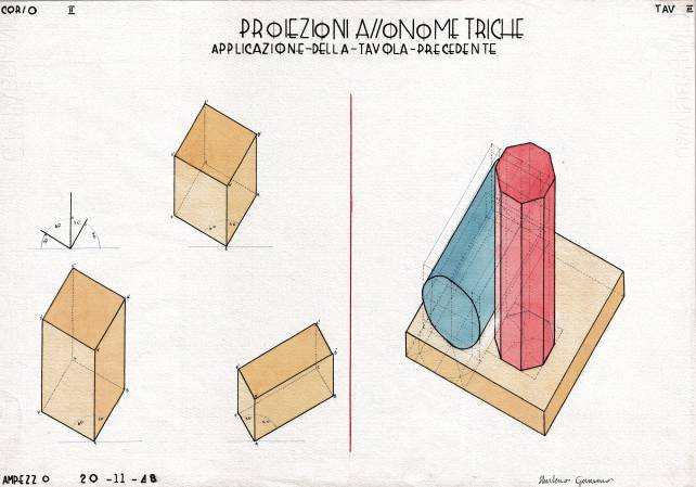 Disegni di Germano Sburlino, allievo dell’Istituto Professionale Arti e Mestieri (edili e falegnameria) di Ampezzo, anni 1948-‘51.