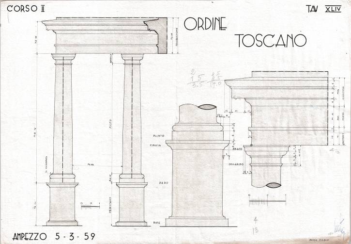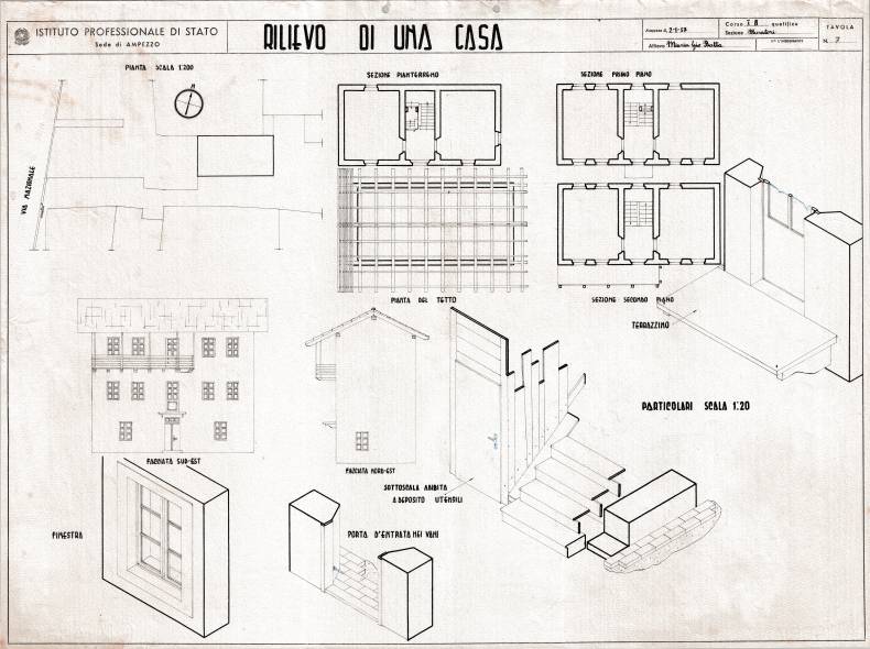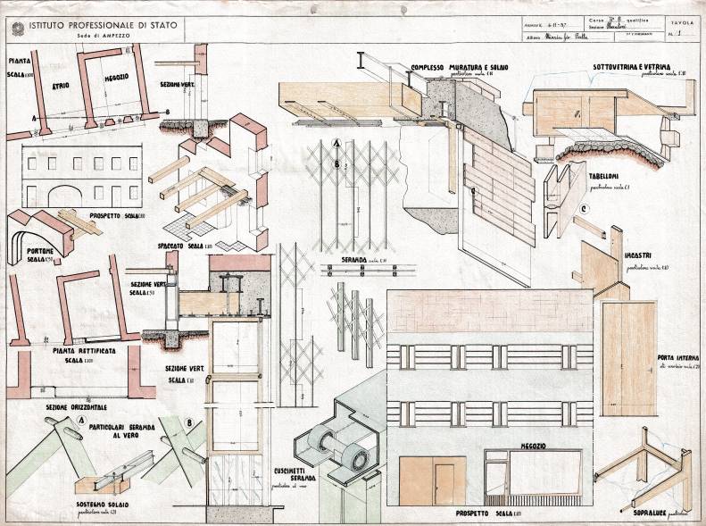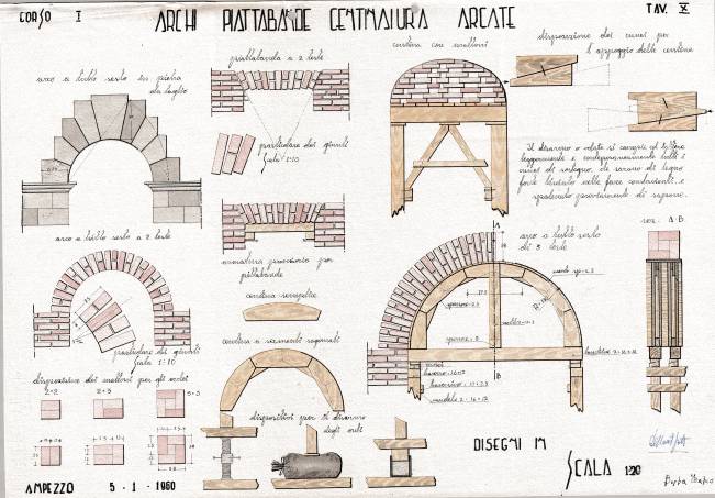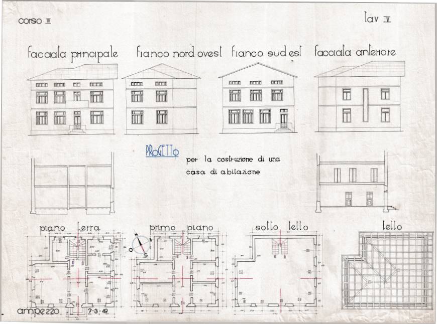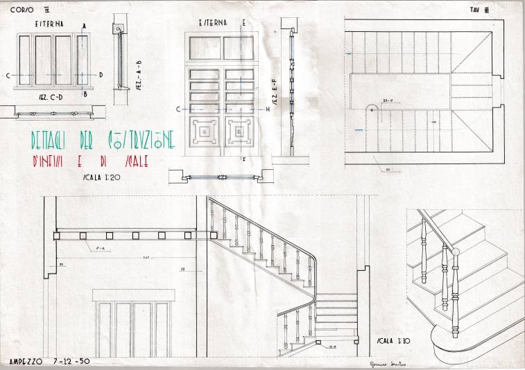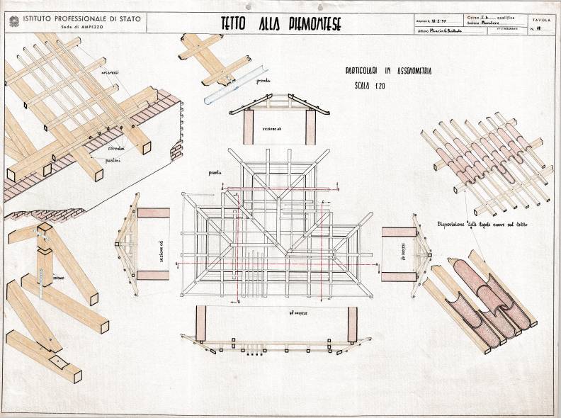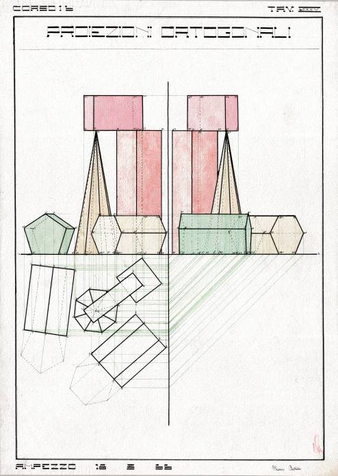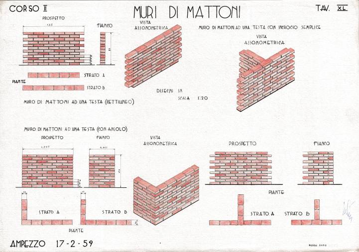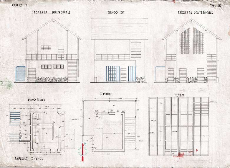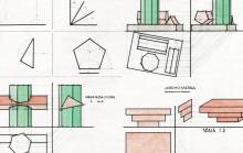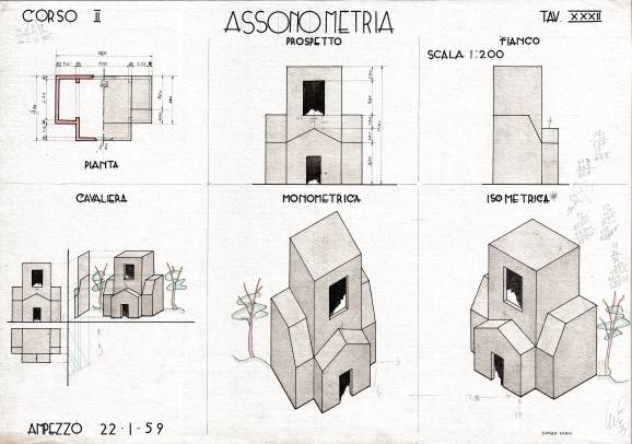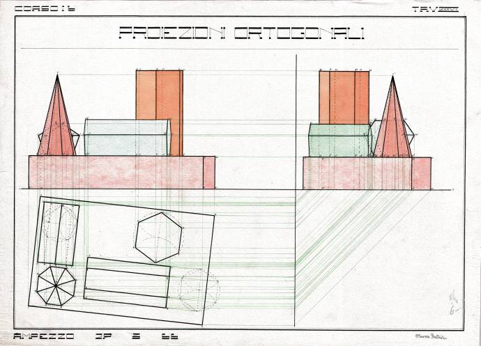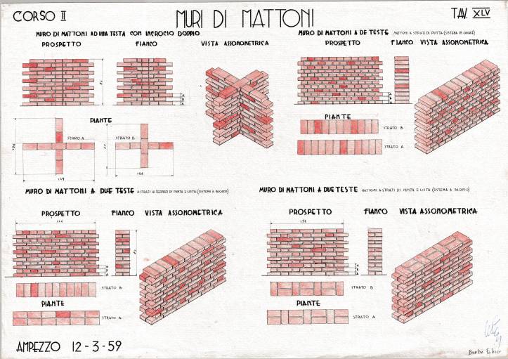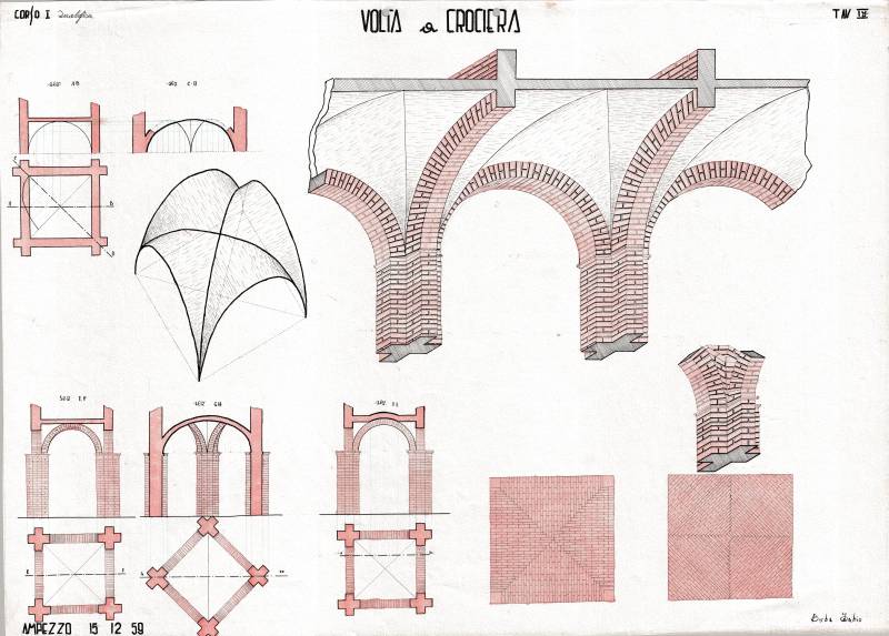 Disegni di Germano Sburlino, allievo dell’Istituto Professionale Arti e Mestieri (edili e falegnameria) di Ampezzo, anni 1948-‘51.