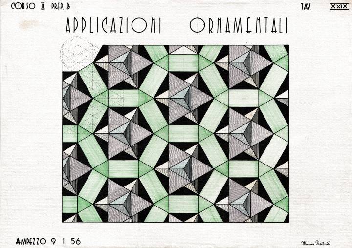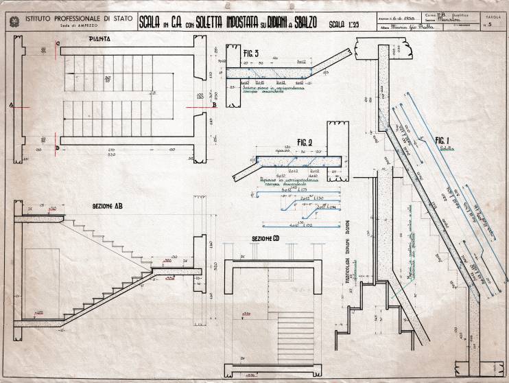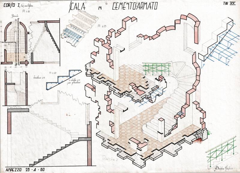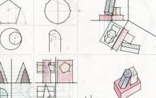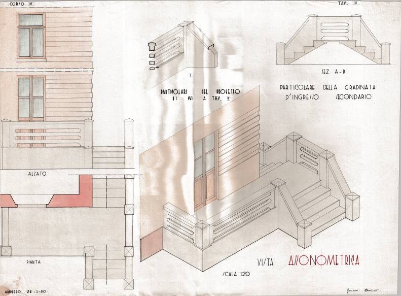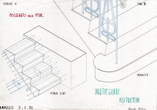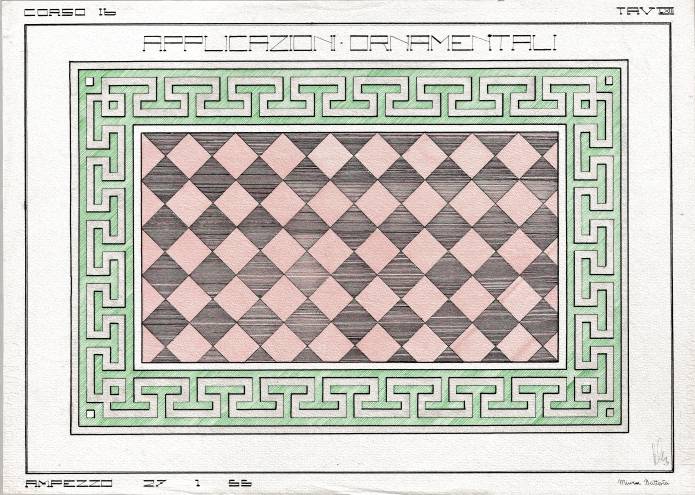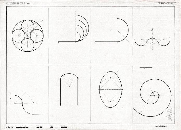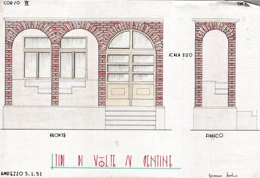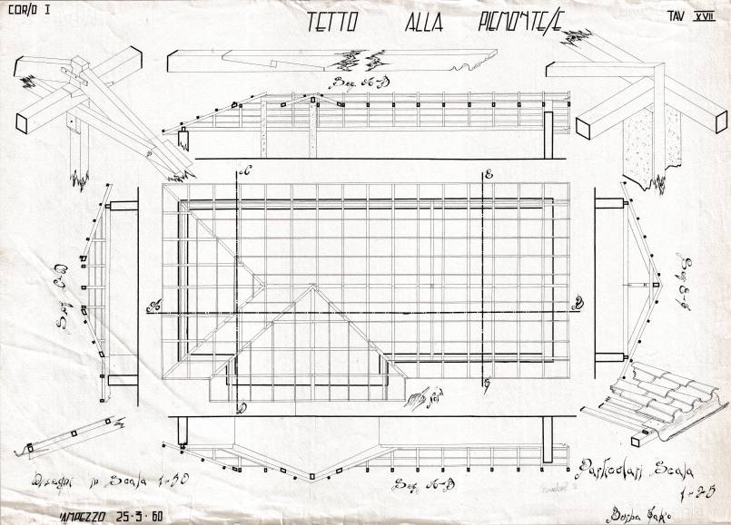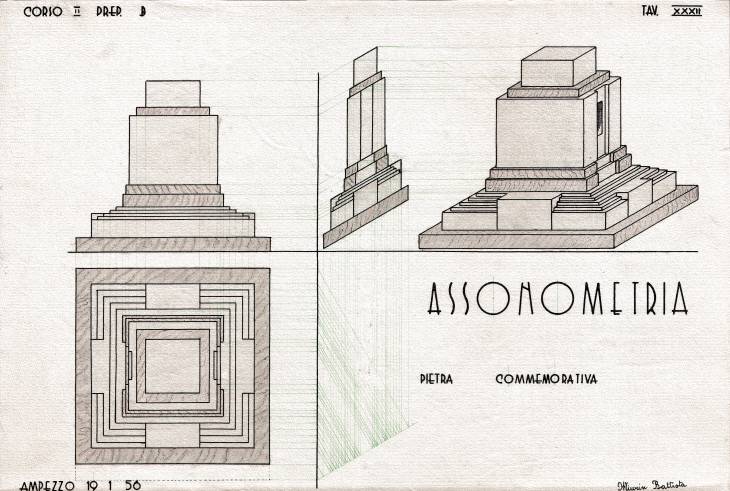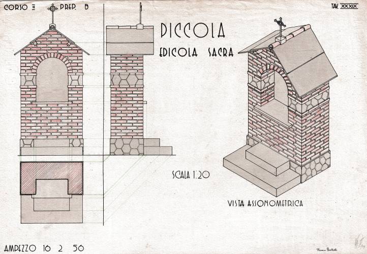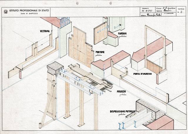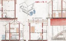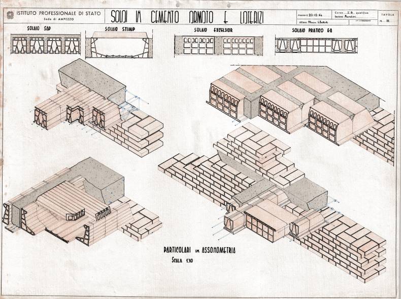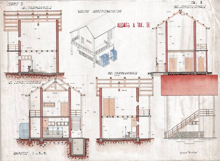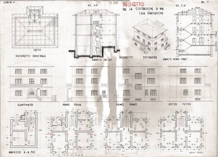 Disegni di Germano Sburlino, allievo dell’Istituto Professionale Arti e Mestieri (edili e falegnameria) di Ampezzo, anni 1948-‘51.