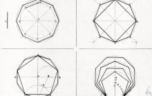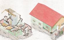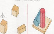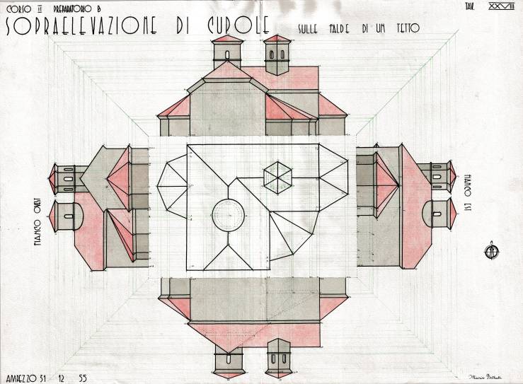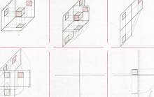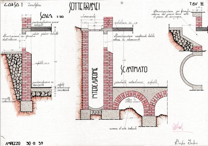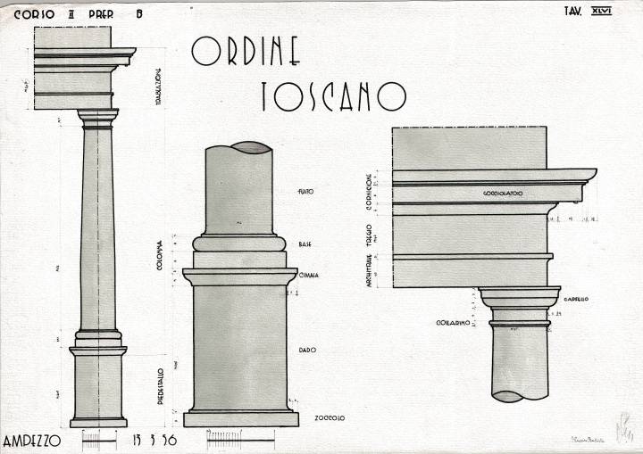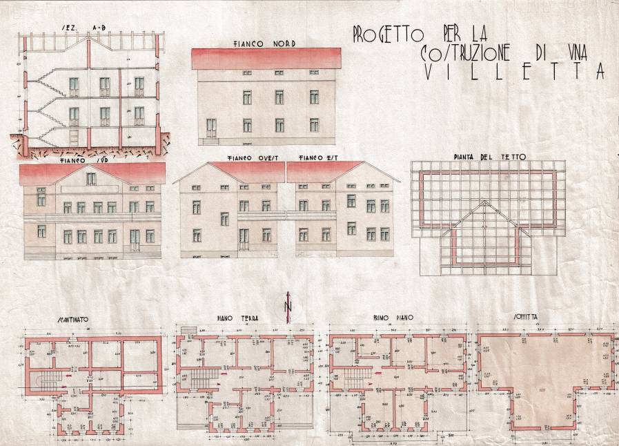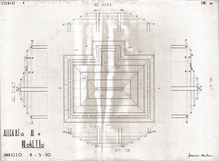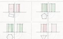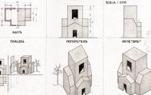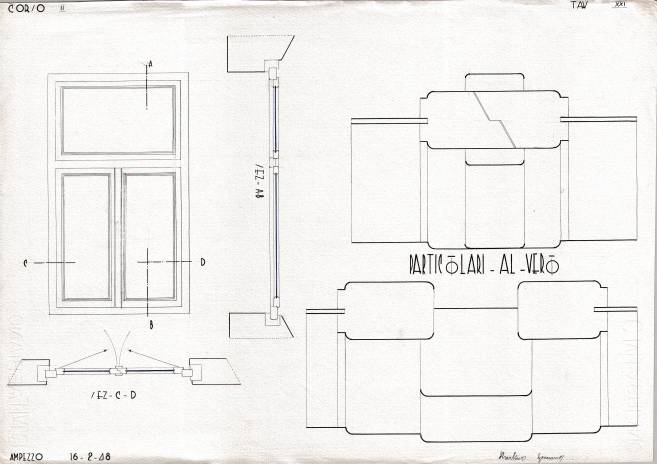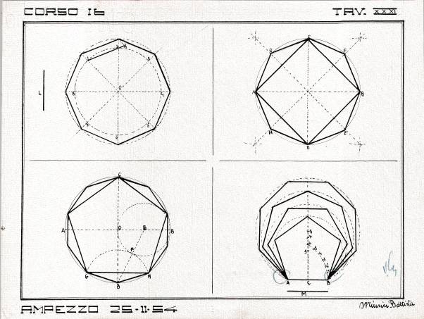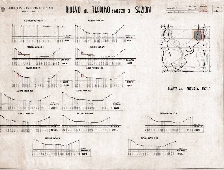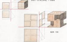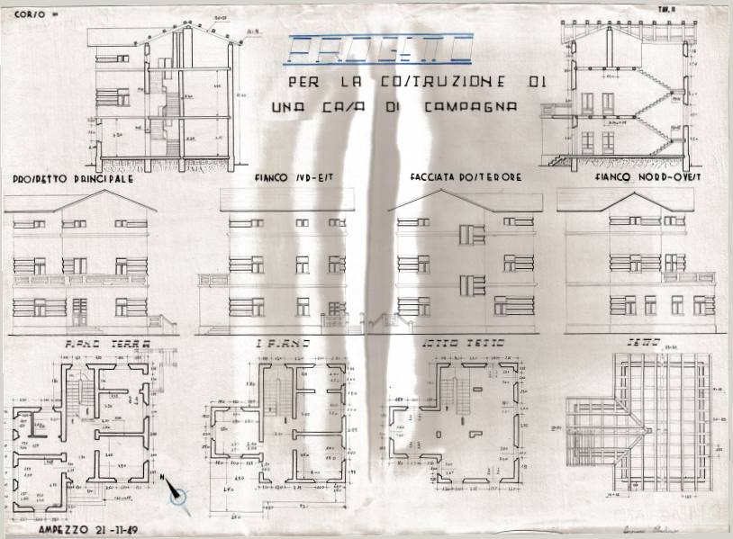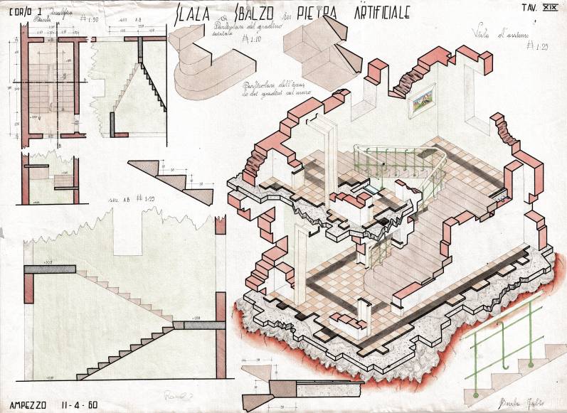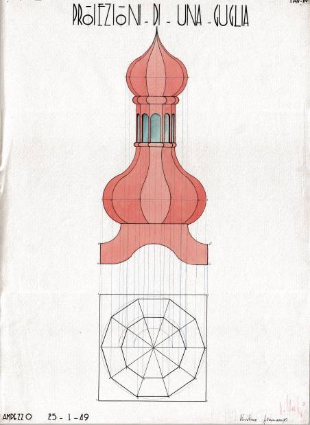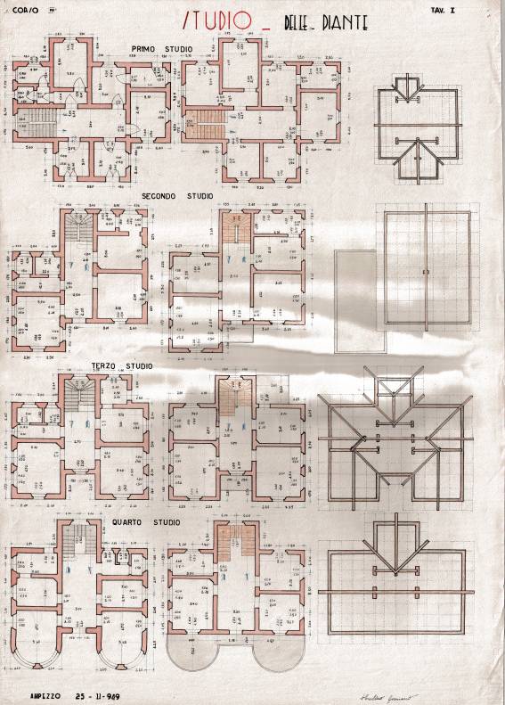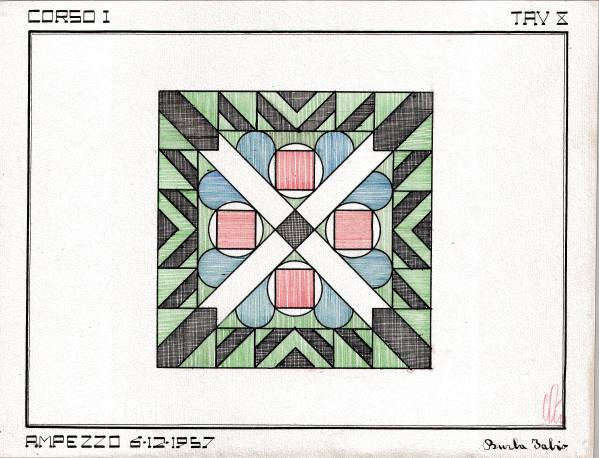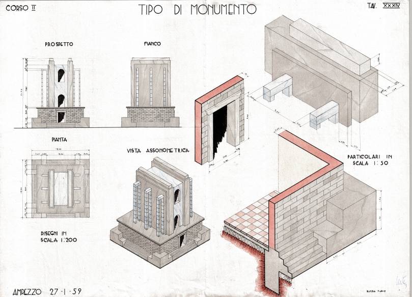 Disegni di Germano Sburlino, allievo dell’Istituto Professionale Arti e Mestieri (edili e falegnameria) di Ampezzo, anni 1948-‘51.