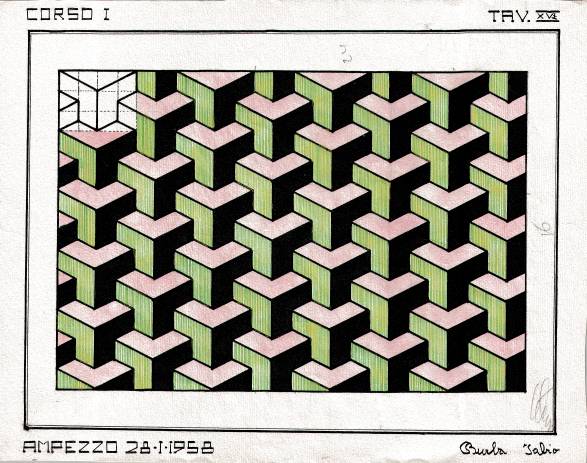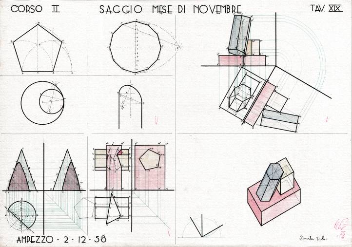 Disegni di Fabio Burba, allievo dell’Istituto Professionale di Stato di Ampezzo, anni 1957-‘60.